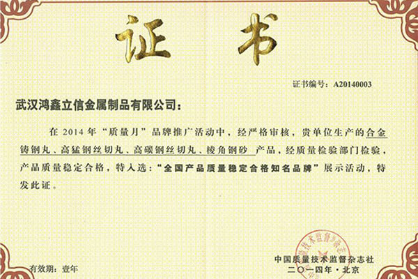 公司所有產(chǎn)品均通過ISO9001 **質(zhì)量認(rèn)證,2014年更獲得了第三屆中國(guó)金屬磨料行業(yè)具有影響力品牌-華尊獎(jiǎng)